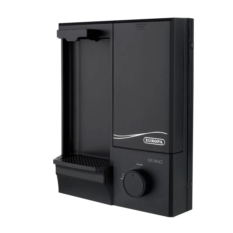 Com design compacto de apenas 13 cm de profundidade, o purificador de água natural Europa Da Vinci possui suporte para copo e bica ajustável: puxando levemente a bica do aparelho, fica muito mais fácil encher recipientes maiores ou lavar frutas e verduras.