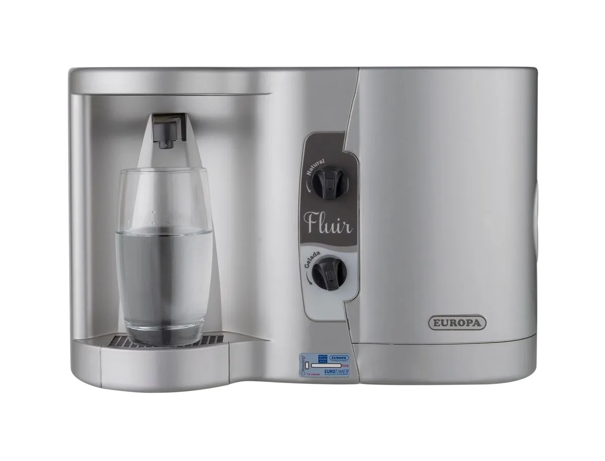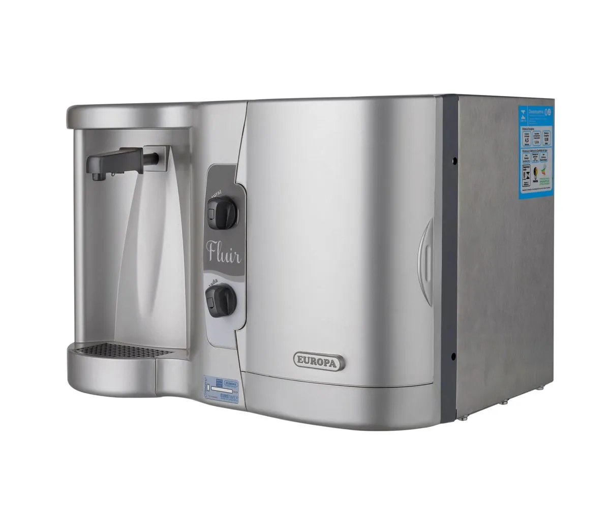 Filtro Europa Fluir inox, fornece água em 3 temperaturas:natural,fresca e gelada.